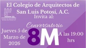 En el marco del 8 de Marzo (8M), el Colegio de Arquitectos de San Luis Potosí informa a sus agremiados, instituciones académicas, autoridades y sociedad en general, la realización del Conversatorio y Exposición Plástica 8M, a celebrarse este jueves 5 de marzo de...