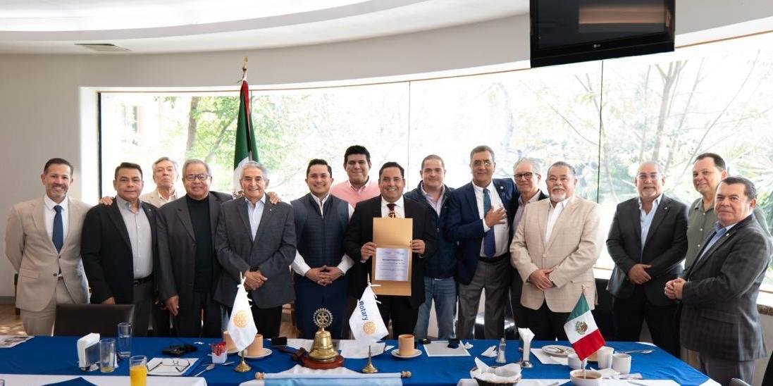 El diputado local de Morena, quien es presidente de la Comisión de Desarrollo Económico y Social, fue recibido por el presidente, vicepresidente y secretario de los rotarios, Joel Torres, Alejandro Stevens y Raúl Flores, respectivamente.